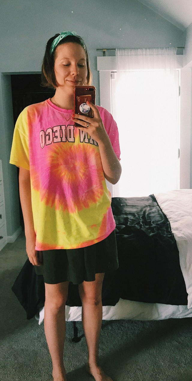 This outfit screams “SUMMER” to me because of the bright colors from my shamelessly touristy shirt that I got from Ocean Beach, San Diego ages ago, which I paired with my favorite mint-colored bandana.