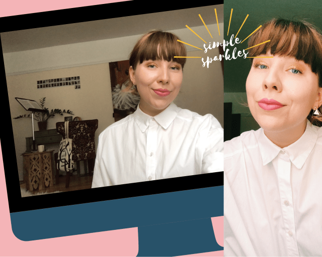 As for makeup, I wanted my skin to glow. This is challenging because webcams cannot capture you clearly and make you look grainy. To avoid this, I used my It Cosmetics Illuminizing CC Cream with a beauty blender. This product makes your skin glow and bouncy, helping you shine through the screen. I used a Max Studio pink lipstick (a similar shade here) as my blush, which added a healthy, rosy color to my cheeks. To bring out the blush, I highlighted my cheekbones with Stila’s highlighter that melts seamlessly into the skin.
