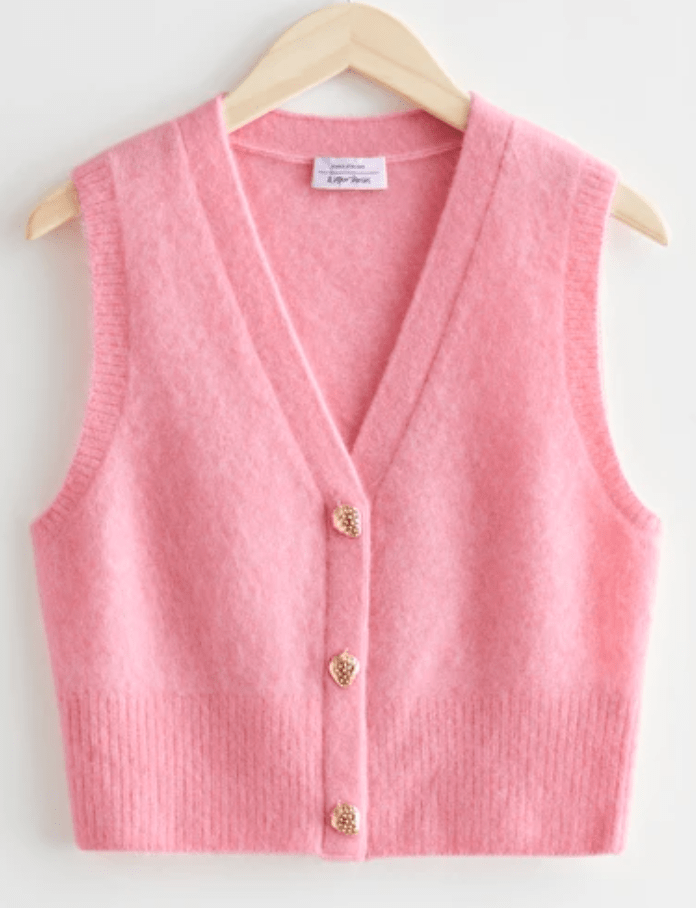 A sweater vest is a great addition to your fall wardrobe because it might still be too warm to wear a long-sleeve knit. So, you can bust this cutie out and wear a blouse underneath to add texture to your look. This & Other Stories sweater vest will look marvelous with a ruffled white blouse!