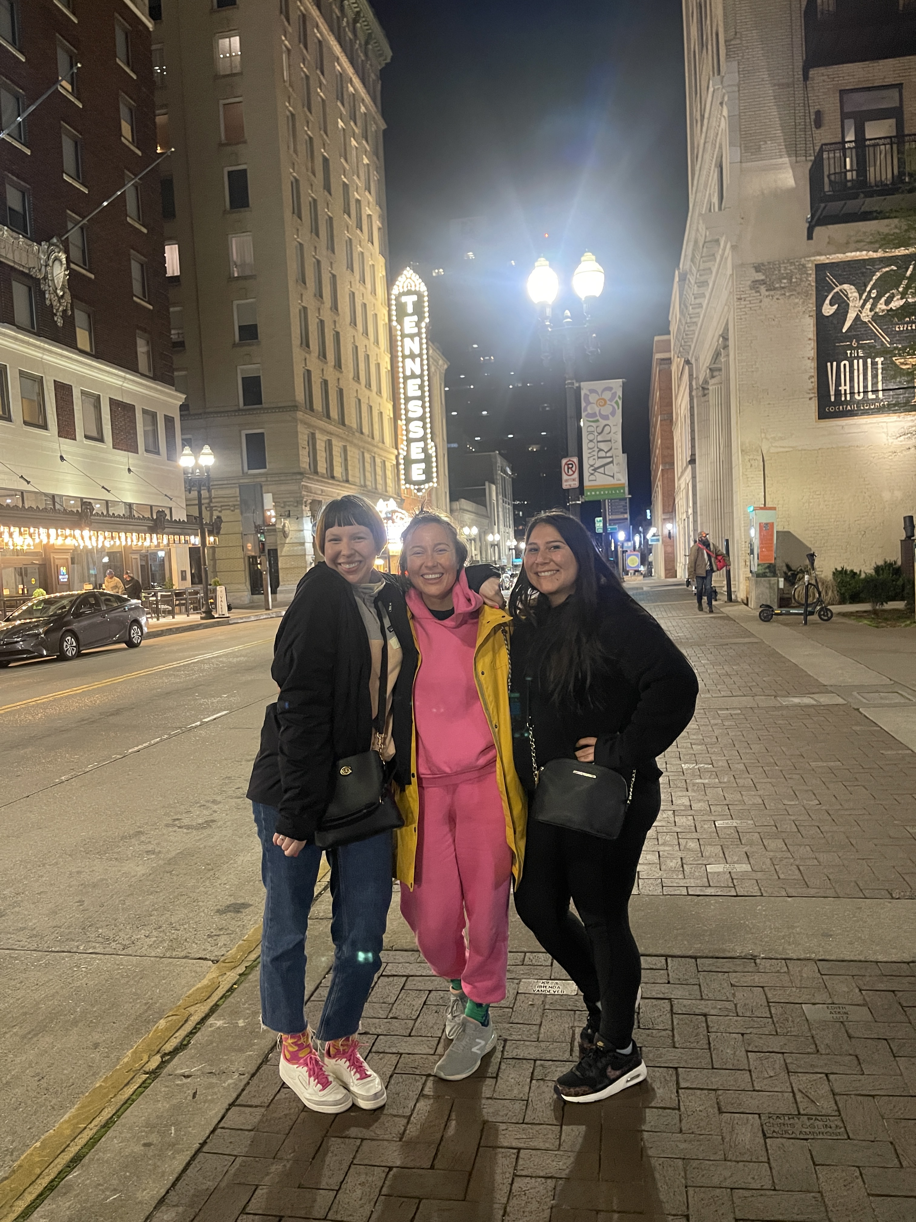 My sister, friend, and I flew into Nashville and then drove to Gatlinburg, the city on the outskirts of the Great Smoky Mountains National Park. Our Airbnb was a beautiful cabin that stood upon a lush green hill overlooking the great open roads of Tennessee.