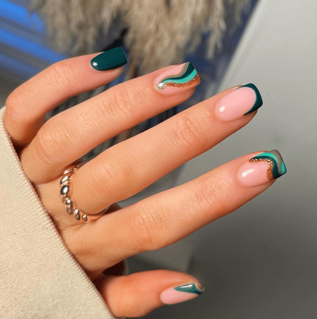 These nails are perfect for a glam look for Halloween! I love the swirl of chunky gold polish.