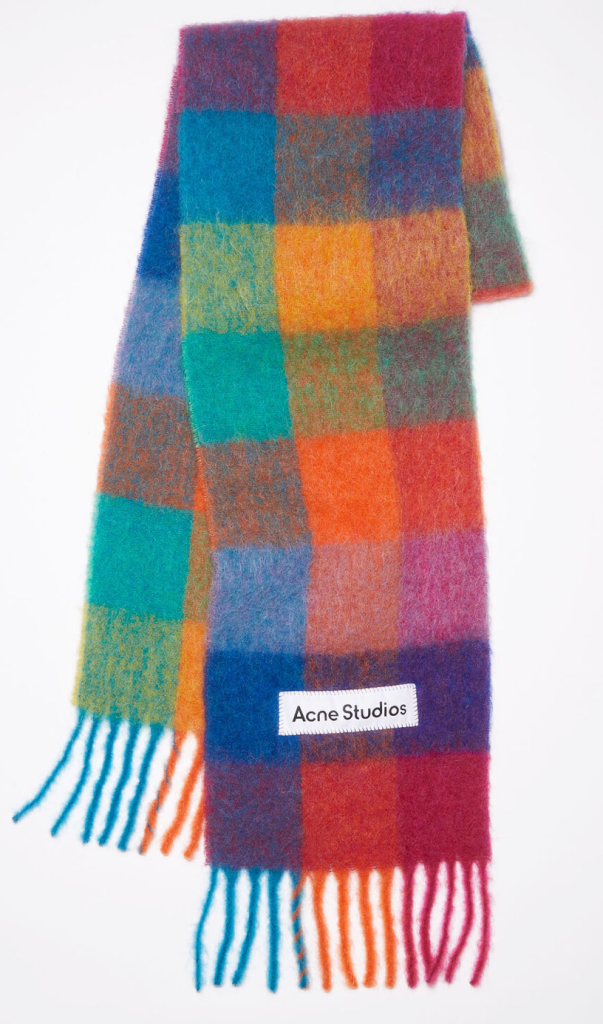 This mohair Acne Studios scarf went viral for a reason. I mean, look at those pretty colors! Bundle up in this scarf while caroling or building a snowman.