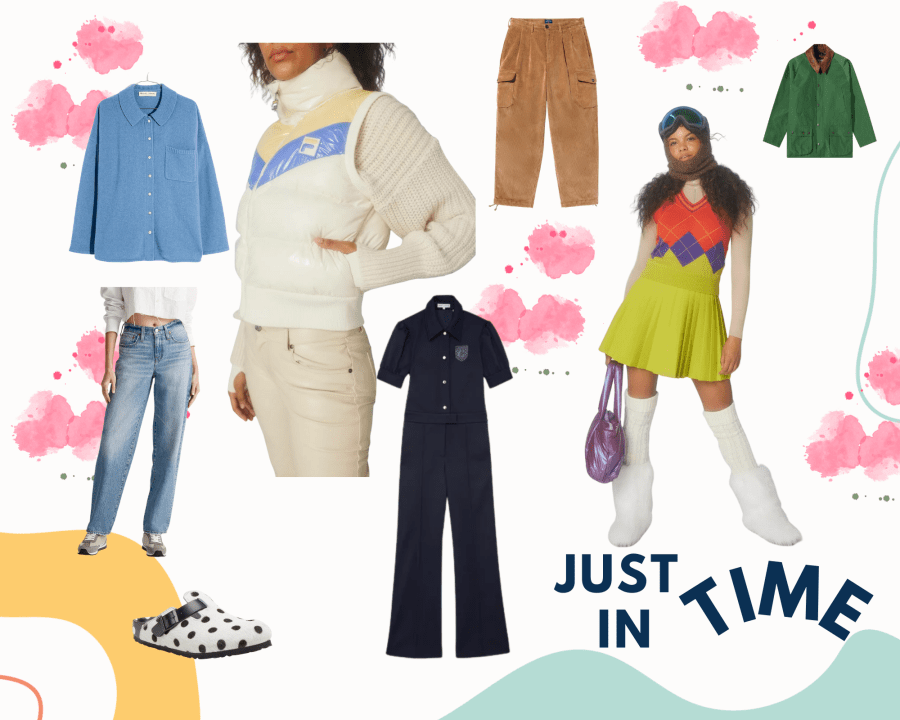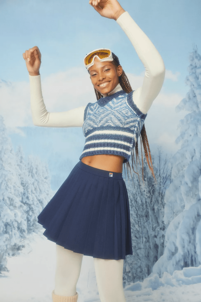 If you’re looking for an après-ski fit, might I suggest choosing something from the FILA x UO collab? This colorful sweater vest looks great with this mid-rise mini skirt. Complete the fit with this colorblock puffer vest that you can wear to the slopes or ski lodge.