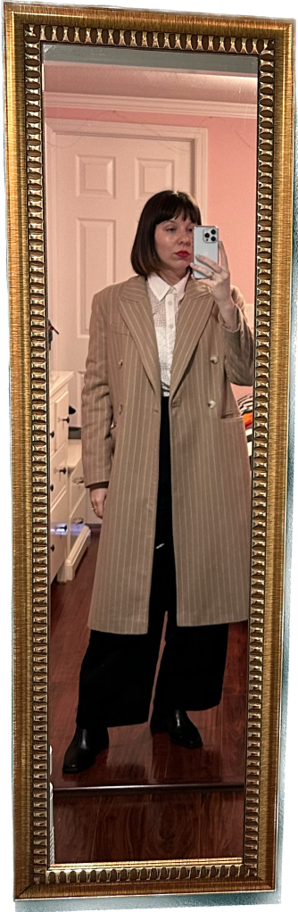 COS pants, Anthropologie top (sold out, but this is a fun short-sleeve option), Vagabond boots, Topshop coat (similar)