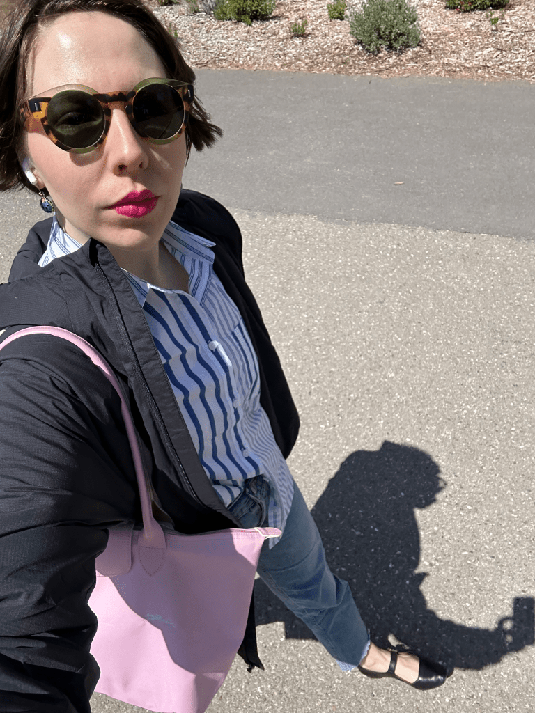 A blazer would have been a chic option for this look, but again, the cold weather got in the way (don’t be deceived by the sun in my face). However, this Marmot jacket goes with everything. I swear!