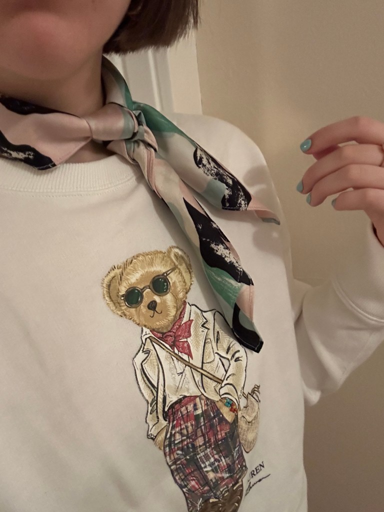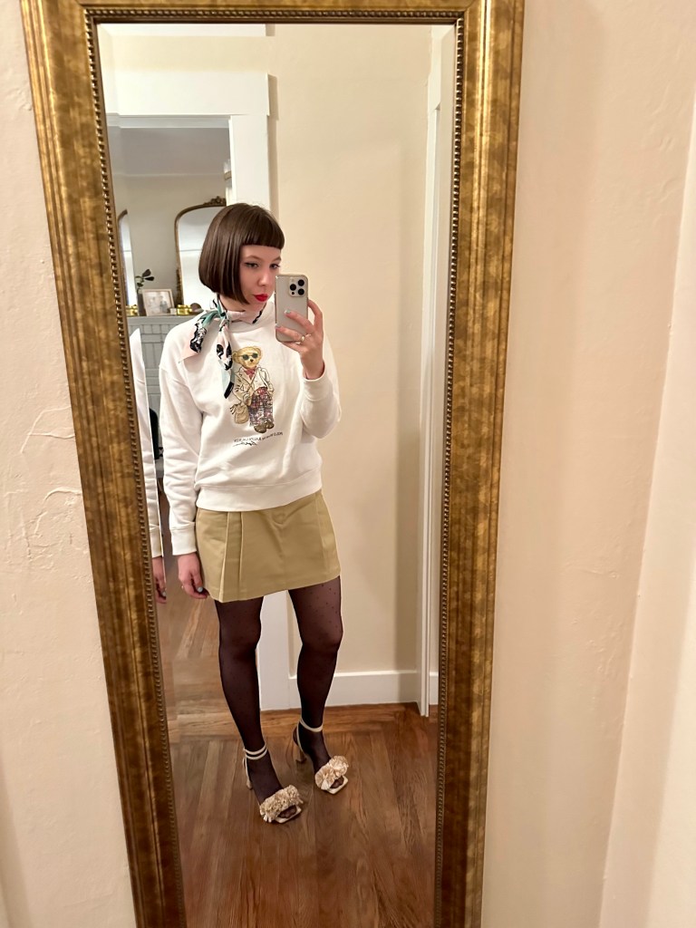 Sam Edelman shoes, Sézane tights, Aritizia skirt, Ralph Lauren sweater (choose your fighter), Open Edit scarf (if I had this Kate Spade one, I would wear it instead! so fun!)