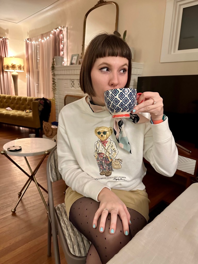 This year I brought a little oomph to the Thanksgiving table. You might be wondering, “how?” The answer: wearing the world’s shortest mini-skirt (according to my mother), statement shoes, and a wholesome sweater. Here’s the full fit: