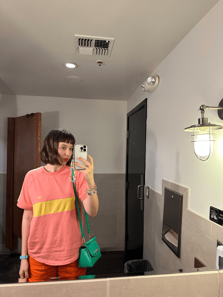 the game day fit pic I sent to Oleg 🙃 btw, I wouldn’t recommend doing this. outfit details: Adidas Originals x Wales Bonner t-shirt, Stüssy pants, Anne Klein purse