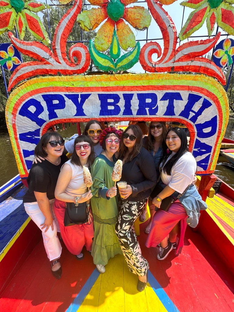 Then, we met our driver (shout-out to the taxi service at the airport) and arrived to Xochimilco, a UNESCO World Heritage Site known for its canals, which you can journey down via colorful trajinera boats. My sister booked through Airbnb and the staff were amazing. We lucked out because other tourists who joined us on the boat were filled with good energy. Plus, quite a few were also celebrating their birthday, so we were literally on a party boat.