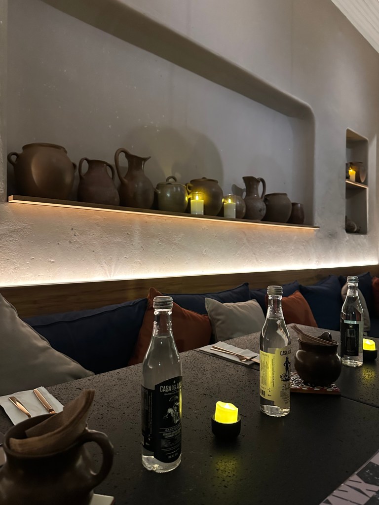 After a day of fun in the sun, we went back to the house for a power nap before getting dinner at Mux Restaurante. It was a beautifully decorated space with a menu that felt more like a book. The meals were broken down by region, which was a cool way to get a taste of Mexico (I discovered the flavors of Oaxaca). However, the service was not-so-great and the food was just average. 😦