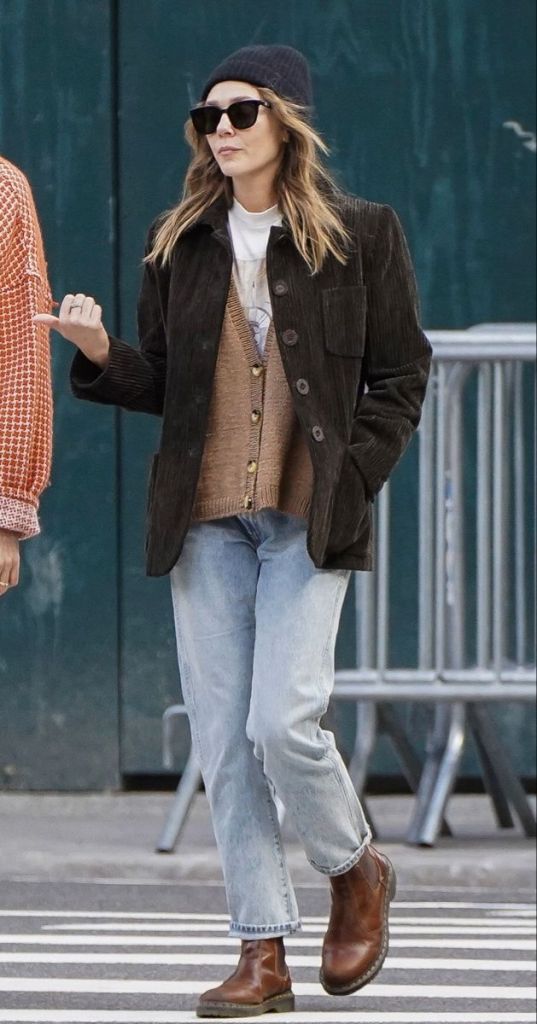I saw this photo of Elizabeth Olsen circulating and immediately saved it to my Pinterest fashion board. I love the layers and chocolate brown colors that she has going on! Chef’s kiss!